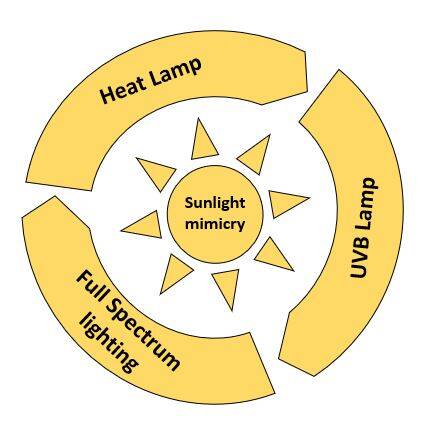 Providing proper heating for reptiles can be challenging, as there are several factors to consider when determining their specific needs.In this section, I’ve outlined the essential components your reptile will need, categorized into three key areas. These include: a UVB unit to meet the animal’s UV requirements, a basking lamp to provide the necessary heat, and a full-spectrum lighting unit to replicate natural sunlight as closely as possible. Each of these is crucial for your reptile’s health and well-being as all aid the fuctions of metabolism, digestive health,circadian sleep rythm, immune system health and much more.